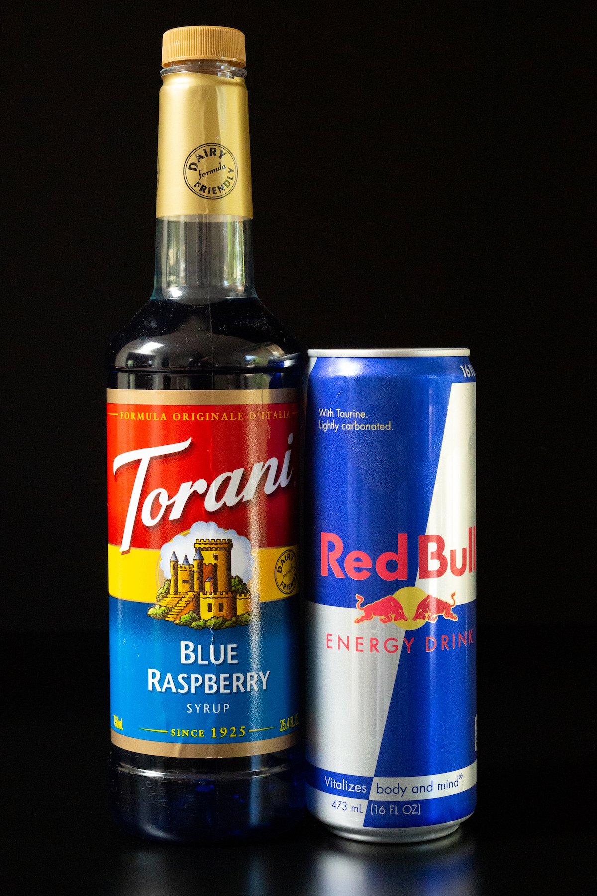 You can keep it simple with straight Red Bull, or add flavored syrups like blue raspberry, peach, or watermelon for your own custom slushy creation.